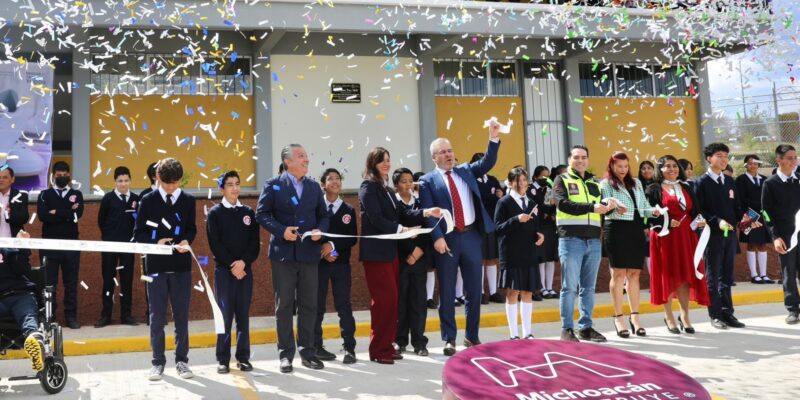 *Morelia, Michoacán, 27 de enero de 2026.-* El gobernador Alfredo Ramírez Bedolla inauguró las nuevas instalaciones de la Escuela Secundaria Técnica 166, obra en la que se invirtieron 12 millones de pesos para la construcción de un edificio con seis aulas, laboratorio, patio cívico, cancha de usos múltiples, entre otras amenidades.