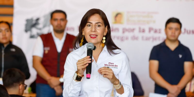 *Morelia, Michoacán, 24 de febrero de 2026.-* La secretaria de Educación, Gabriela Molina, informó que la entrega de tarjetas bancarias del programa de becas Gertrudis Bocanegra se realizará los días 25 y 26 de febrero, para quienes no pudieron recogerlas men la fecha que les tocaba. Este ajuste en el calendario permite dar continuidad a la estrategia integral del Plan Michoacán por la Paz y la Justicia, tras la reprogramación de las fechas iniciales.