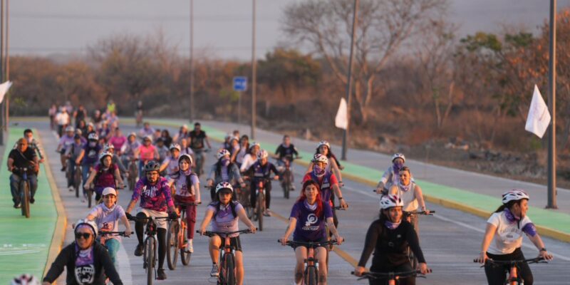 *Morelia, Michoacán, 11 de marzo de 2026.-* La avenida del Molcajete se llenó de ciclistas para conmemorar el Día Internacional de la Mujer con la “Rodada Púrpura”, que organizó la secretaria de Desarrollo Urbano y Movilidad, Gladyz Butanda Macías.