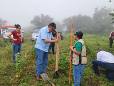 Para contribuir a incrementar la masa forestal y fomentar la restauración vegetal de Santiago Acahuato, el presidente municipal José Luis Cruz Lucatero acompañado ...