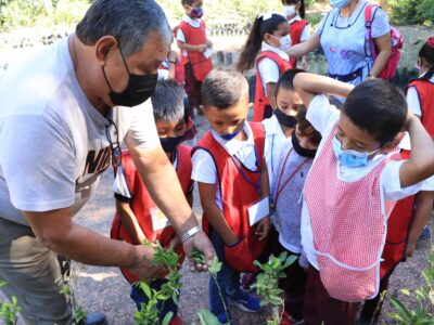 Conviven y aprenden niños y niñas en el vivero municipal.