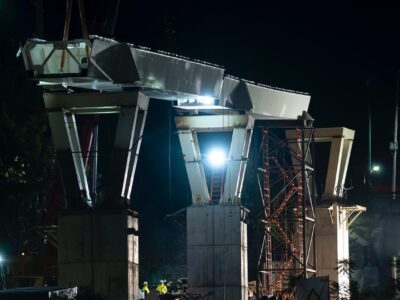 Supervisa Bedolla colocación de trabe en distribuidor vial de salida a Pátzcuaro