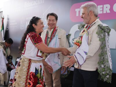 Bedolla y Mario Delgado arrancan en Cheranástico entrega de libros de texto gratuitos