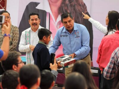 Entregan Nacho Campos y la SEE equipamiento a planteles de Uruapan